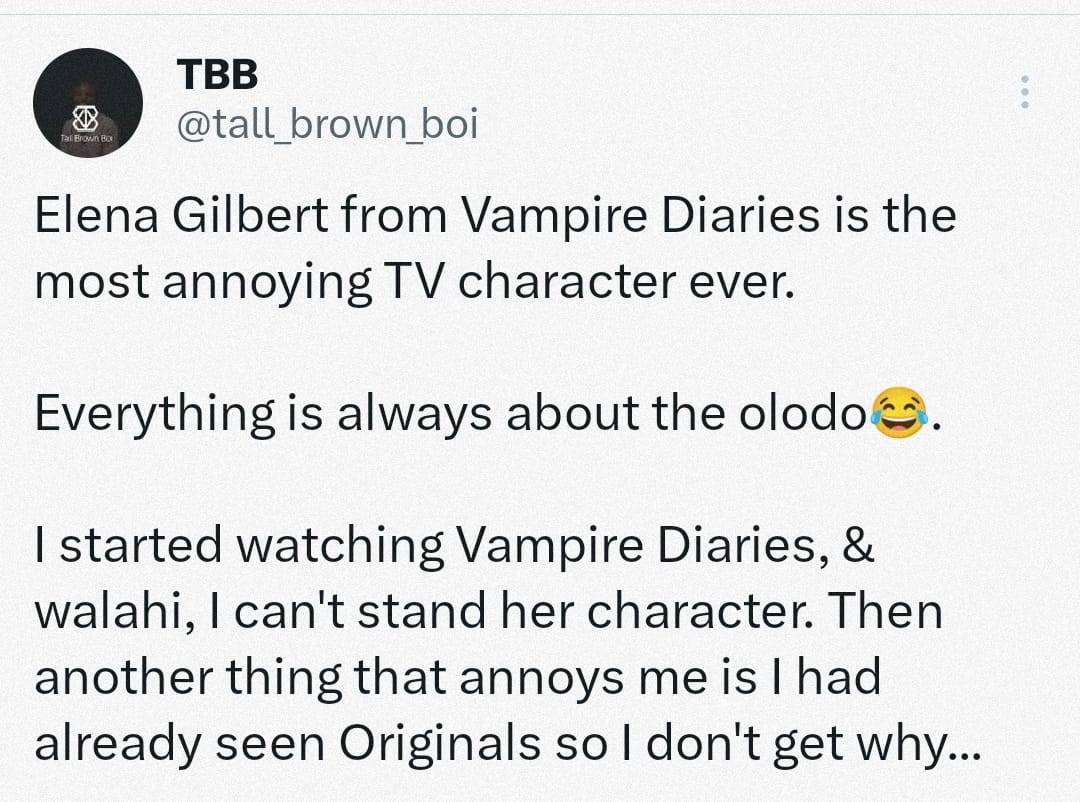 What I like about Vampire Diaries is, you can watch it like a teen and be giddy about the relationships, and you can now watch it as an adult and recognize them for what they really are — Toxic and annoying people… Tueh!